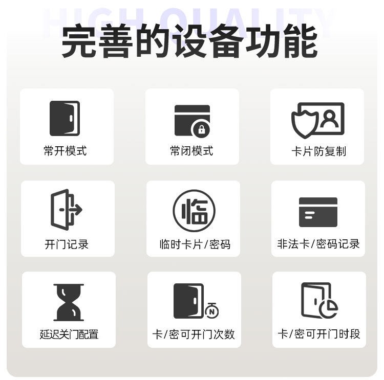 九江这款智能门锁提供室内门锁和防盗门锁两种选择,其中室内门锁尺寸为 2806521mm,适配 5050 锁体;防盗门锁尺寸为 3657021mm,适配 6068 锁体,可满足不同场景的安装需求。它采用铝合金一体成型搭配钢化玻璃面板打造,兼具坚固耐用的品质与简洁美观的视觉效果。门锁支持蓝牙无线通讯,解锁方式丰富多样,密码、卡片、蓝牙、钥匙四种方式随心选择,满足不同使用习惯与应急需求。其工作温度范围为 - 20~70℃,能适应多数地区的气候条件,采用碱性电池供电,安装更换便捷,是兼具安全性与实用性的门锁选择。